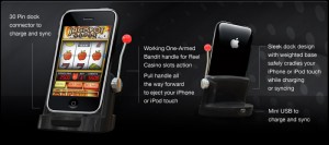 Dit is een gadget die zo in de rubriek Raarste gadget van de week van Annet Smith zou kunnen. Het is een dock voor je iPhone of iPod Touch. Aan de rechterkant van die dock zit een armpje. En in combinatie met de gratis applicatie (alleen in de VS application store op het moment) kun je zo je iTouch omtoveren in een mini fruitautomaat.