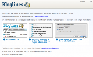 Verrassend nieuws vandaag. Ask.com maakte bekend dat ze overeenstemming bereikt hebben met MerchantCircle voor wat betreft de overname van Bloglines.com. Afgelopen september maakt Ask.com bekend dat ze de stekker uit deze dienst zouden trekken (zie ook dit bericht). Maar nu lijkt Bloglines.com gered te zijn.