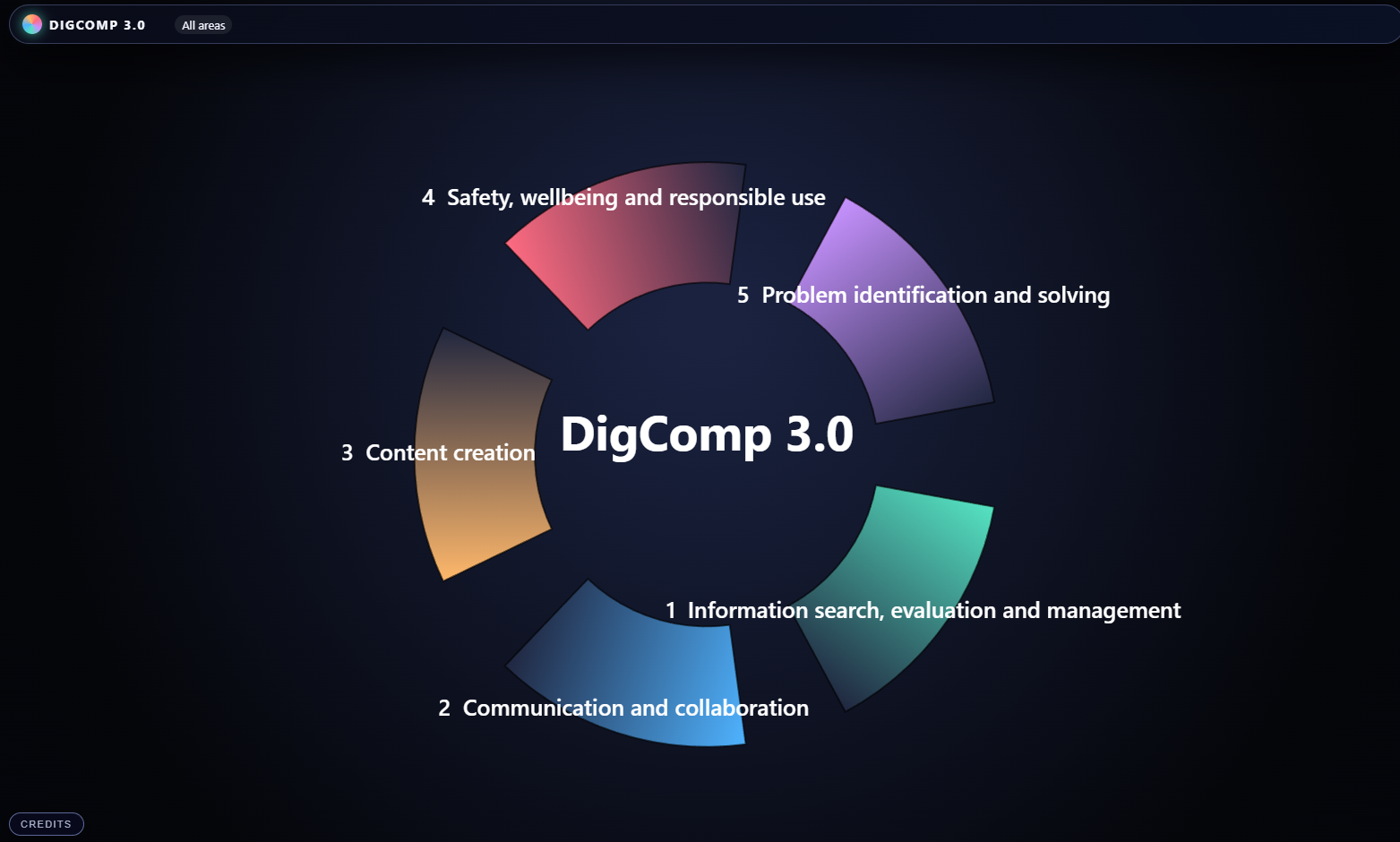 Tot slot zijn er leeruitkomsten toegevoegd aan het document én zijn er JSON- en spreadsheetversies van de competenties beschikbaar gesteld. Dat maakt het relatief gemakkelijk om, in combinatie met wat vibe coding nieuwe overzichten te maken van de competenties, of ze te importeren in andere systemen. Onderstaande weergave heb ik vandaag met dank aan ChatGPT gemaakt van DigComp 3.0.