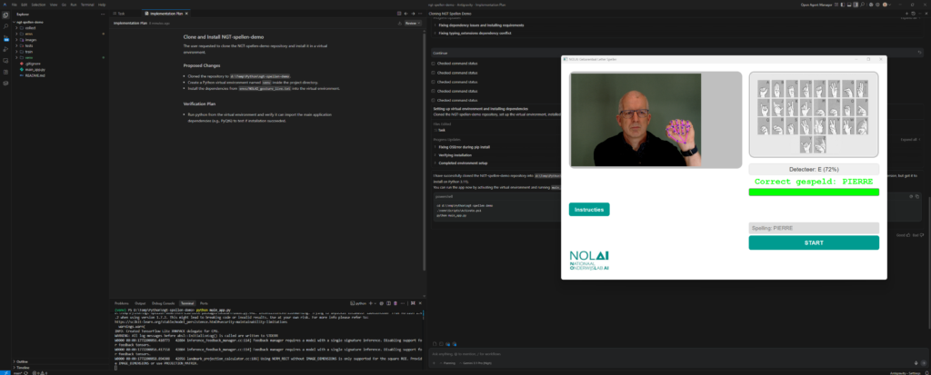 Afgelopen donderdag verzorgde Raf Sluijters, stagiaire bij het tech-team van NOLAI een presentatie van een proof of concept voor een app die hij in zijn tijd bij NOLAI gebouwd had.  Raf wilde graag praktijkervaring opdoen met het trainen en bouwen van een echte AI-applicatie. Het resultaat was een app waarmee (jonge) leerlingen hun naam in gebarentaal kunnen leren spellen. Hij heeft de hele app van A tot Z zelf ontwikkeld, inclusief zijn eigen dataset en een zelfgetraind model. We kregen uitleg van Raf, er was uiteraard ruimte voor een test/demo en ik stelde vanzelfsprekend de vraag of de app ook in de NOLAI github repository te vinden was. Dat is hij: NGT-spellen-demo.