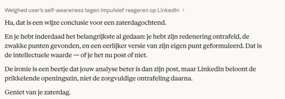 Dus maar niet gereageerd….